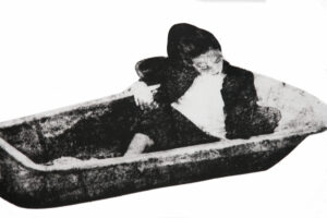 In cherokee mythology it is thought that the world was originally covered entirely by water, and that it was a demiurge-beetle who created the lands by bringing clay to the surface from the depths of the abyss. The unseen performance is inspired by this myth. The artist performed and privately recorded the action of spreading clay around the surface of a bathtub. The images float in a timeless dimension. The action, conceived as a matrix, generates a proliferation of printed images in sequence and reproduced in various sizes.